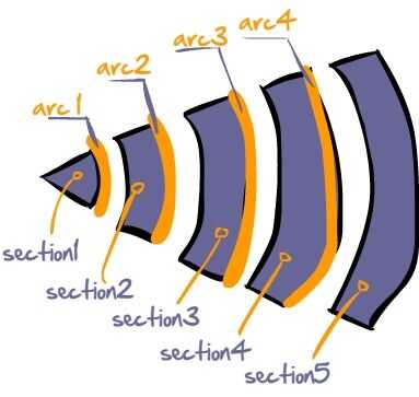 He dividido el taladro-proyecto de ley en 5 secciones, debido a las cuatro revoluciones en dibujos más. Estas se utilizarán para marcar donde irá la cinta de opciones, como veremos en el paso 12.