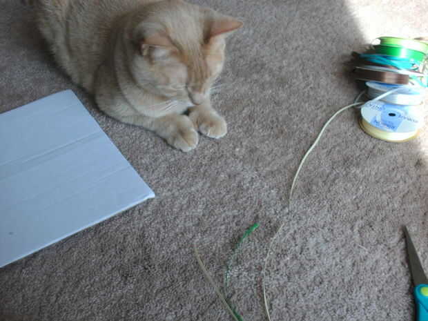 juguete gato fácil solamente con hilo y papelPaso 1: papelConsiga un pedazo de papel lo coloque en una textura ásperaPaso 2: hilo de roscaagregar el trozo de hilo al final para que vea como una colaPaso 3: decorarcolor y añadir detalle y listo