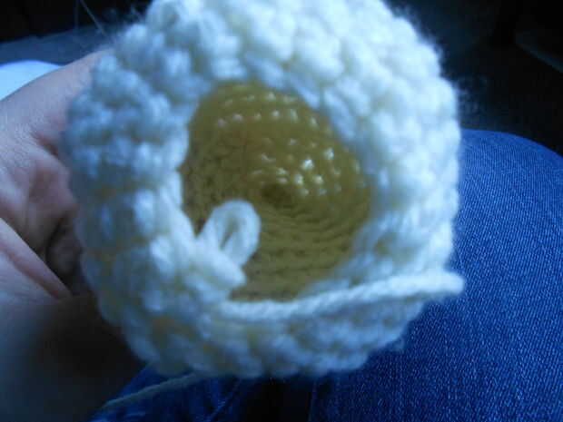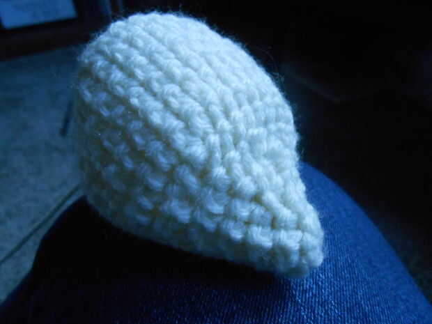 Ronda 5: sc en los siguientes 7 puntos de sutura, inc en los siguiente 3 puntos, sc en el siguiente 11 puntadas, inc. en los siguiente 3 puntos (30)