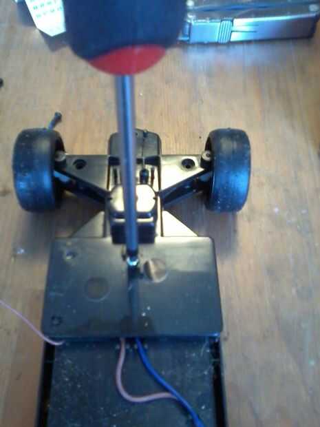 Allí verá bar s conectada a las ruedas que se activa por unos engranajes que el coche de buey. En mi modelo de coche hay "paradas" mouled en esto (las pestañas negro en la imagen).