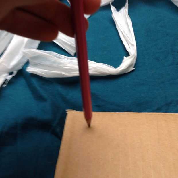 Tome su pedazo de tarjeta y utilizando su inicio de lápiz hacer agujeros en ella hasta que han cubierto la cosa entera.