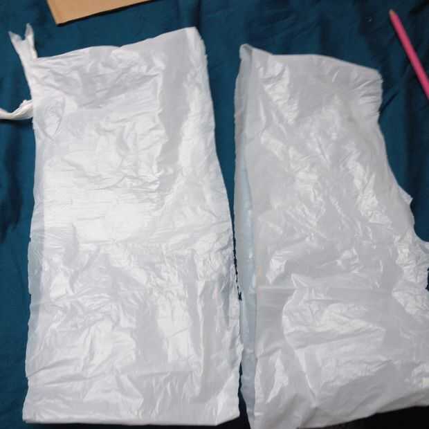 Cortar la bolsa por la mitad en 2 tubos y repita con cada sección hasta que tienes una selección de los tubos de una pulgada de grueso (pero no necesita ser perfecto que no te preocupes.