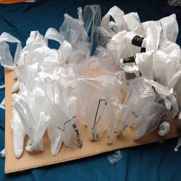 También usé diferentes tipos de bolsas de plástico para variar la textura de la "hierba"