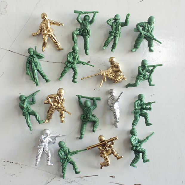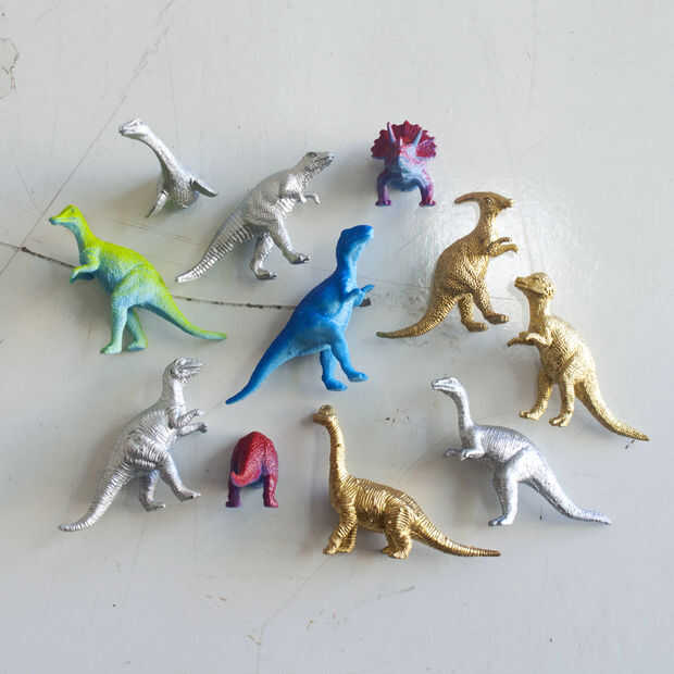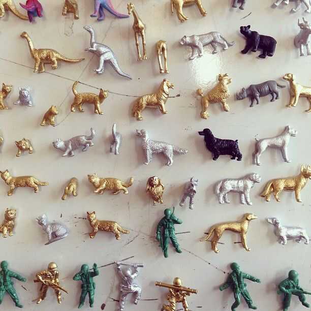 Todos los juguetes están listos para ser pintados cuando usted las consigue, pero uso un cuchillo del exacto para quitar los soportes de los soldados y un hack Sierra para cortar los animales cuerpos por la mitad con aerosol. Luego lijarles un poco para hacerlos suaves en las zonas donde cortarlos.
