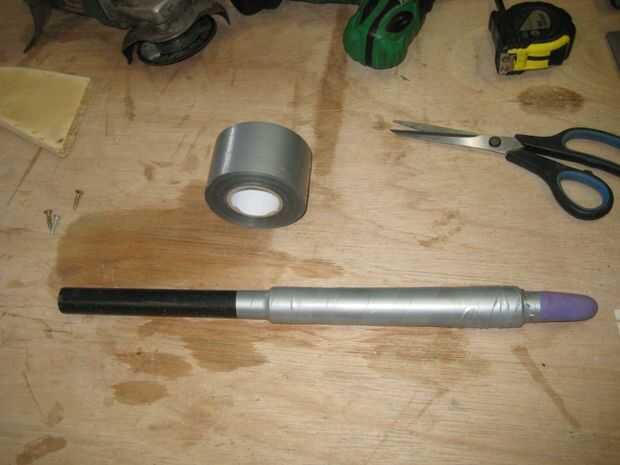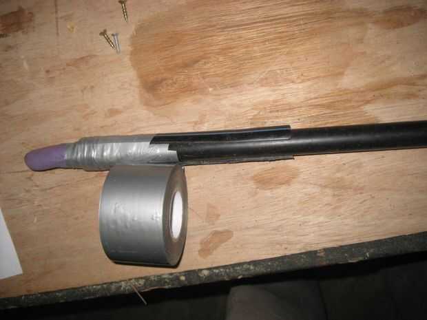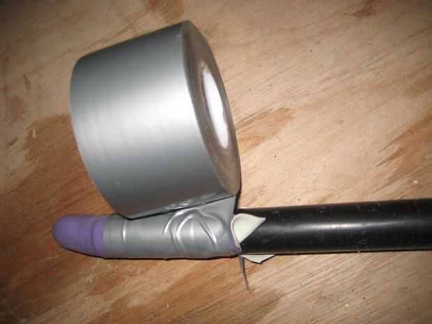 Cinta simplemente el dedo del guante de goma en el tubo como en la imagen. Ahora tienes un arma de simple guante listo para acoplar a la culata de la pistola.
