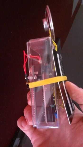 Pulsa el botón debería no estar todo el tiempo, obviamente. Ajustar la goma si es el caso, o agregar algún relleno del juguete entre la tarjeta de crédito y la caja, quitar la presión.