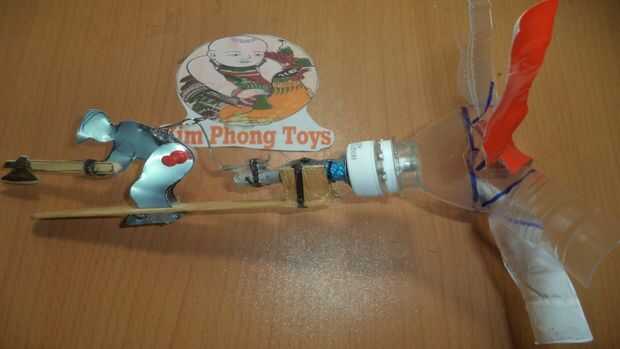 Vane se refiere a la dirección del viento, los extranjeros hacen de la madera, en Vietnam no pueden madera, elegí los materiales son: latas de aluminio, botellas de plástico, tubos de aluminio
