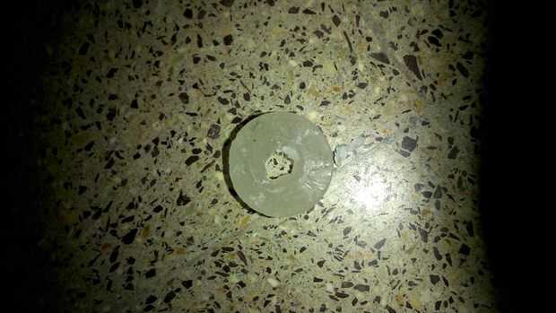 Corte 1,5 cm desde la vela, con la ayuda de un clavo caliente, poner un agujero en el centro de la misma. Ayuda este pedazo de cera como lubricante mientras que el palo de la bobina y sujete la barra de dirección de peluche