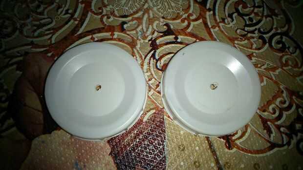 Hacer un agujero en el centro de las bases de la Copa, con la ayuda de un clavo. Clavo puede ser calentado para hacerlo más simple