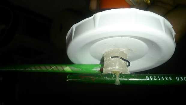En el pequeño gancho lateral, atar un hilo de rosca grueso. poner múltiples nudos repetidamente en el otro extremo del hilo. La longitud total del hilo de rosca debe ser 1-2 cm. Coloque el lado anudado el hilo en la base de la taza