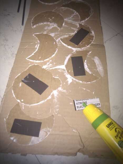 Pegue estas pedazo de imanes en la parte posterior de las piezas de cartón.