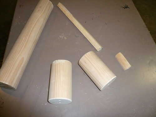 Entonces yo cortar la ronda de cuartos en seis 2" secciones para usarse como soportes para patas de ciempiés... Err, ruedas. Referiré a éstos como "cubiertas de eje" de aquí encendido hacia fuera. También puede usar media para estas piezas, sólo usé lo que tenía sentado en el garaje de algunos proyectos anteriores.