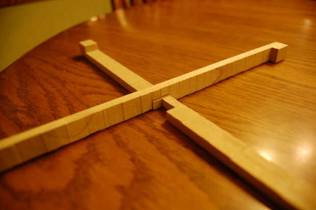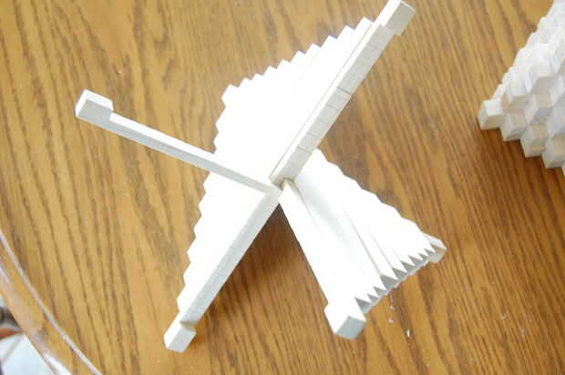 Primero necesita reunir la Fundación correctamente. Ver la primera imagen sobre cómo colocar los dos primeros. Asegúrese de que las piezas son exactamente del mismo modo que están en el cuadro. Tome la pieza especial que tiene el cuarto de pulgada dado en él. Colóquelo en la ranura que está en la pieza inferior en la primera foto. Asegúrese de que la línea central de la obra se ejecuta a través del centro de la pieza que está a su lado y nivele con la parte superior de la pieza inferior. Asegúrese de que su fundación se parece a mi o no funcionará.