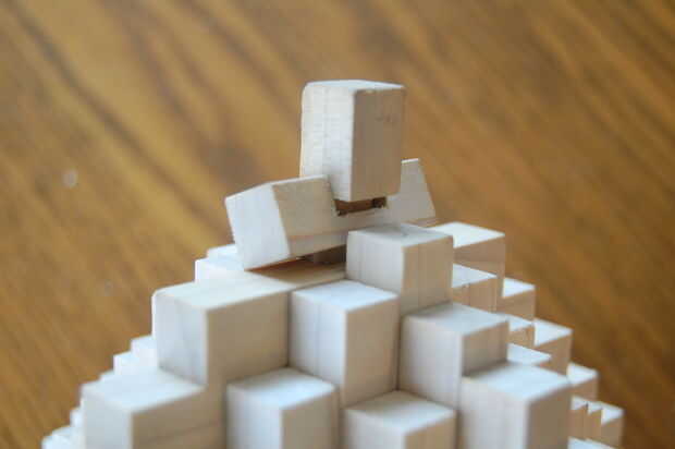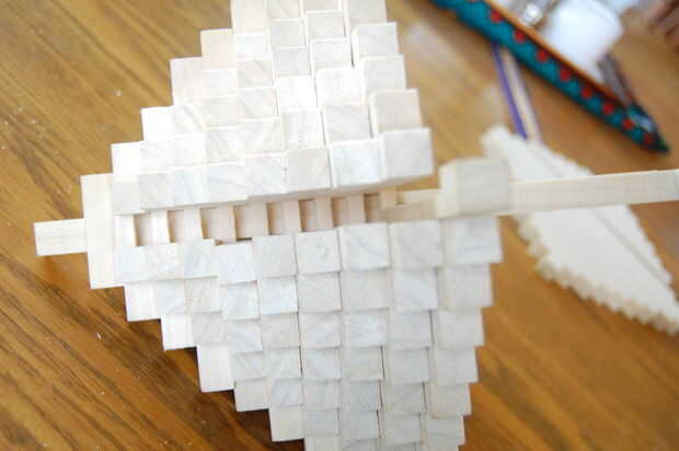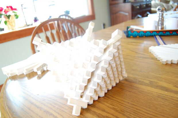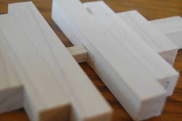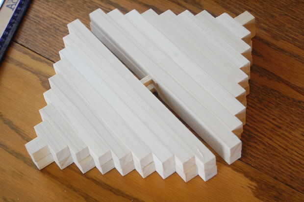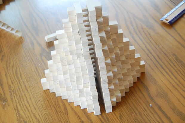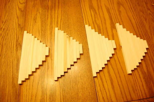 Luego tomar las piezas que se dadoed diferentemente y organizar en dos grupos, añadir 1,5 '' piezas al final de la los sistemas para hacerlos completa. Ahora toma el segundo a uno más pequeño de uno de los conjuntos y colocar 2--1.5'' pedazos en él. Entonces el pedazo más grande siguiente y colocar 2 - 1.5'' piezas y 2 - 2.5'' pedazos en él. Seguir haciendo esto hasta que todas las piezas especiales se llenan. Iniciar placeing piezas especiales en el último tramo que tiene un lado plano.