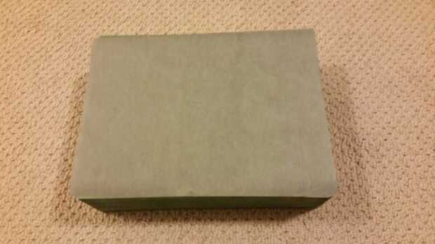 Cortar un trozo de papel de transferencia sólo lo suficientemente grande como para cubrir la parte superior de la caja y coloque el lado oscuro hacia abajo, luego coloque la plantilla en la parte superior teniendo cuidado de centrar. Puede utilizar alguna cinta para guardarlo de la mudanza, pero me decanté por una llave que tenía cierto peso a él.