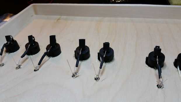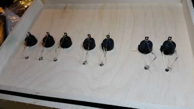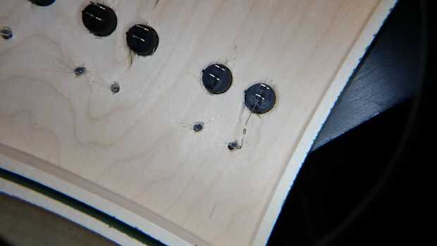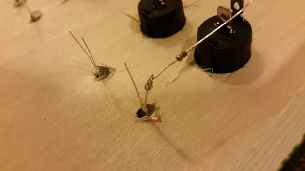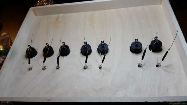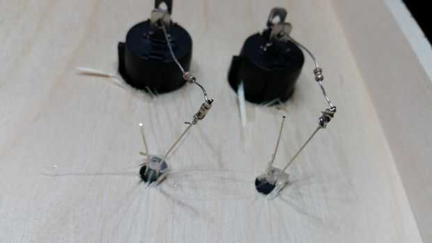 Antes de hacer este proyecto nunca había trabajado con LEDs antes así que no tenía idea de cómo averiguar qué tamaño resistencia a utilizar. Un agradecimiento especial a redditor lampar0 de /r/AskEngineers y wayneh en el Foro de proyecto de allaboutcircuits.com por toda su ayuda. Si desea utilizar diodos LED de los que estoy utilizando, usted puede averiguar el correcto tamaño de resistencia mediante el uso de esta calculadora. La tensión de alimentación sería 4.5volts (pilas de 3 x 1,5 voltios), y la caída de tensión y corriente deseada LED pueden encontrarse en la documentación de su LED. Ya que estos circuitos se conectan en paralelo, el número de LEDs conectados sería 1. Realmente terminé usando una resistencia ligeramente más fuerte que en los LEDs rojos (150 ohmios en vez de 125), así el verde LED termina un poco más brillante si sigues mis instrucciones, pero creo que todavía se ve bastante bien en general.