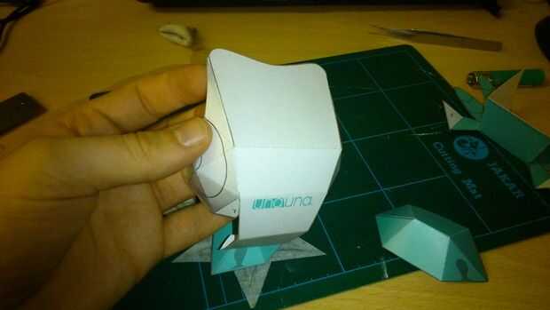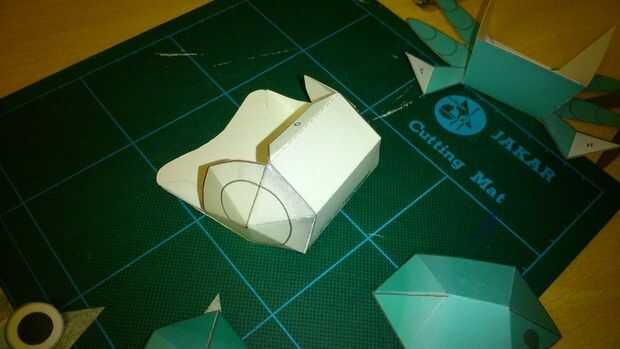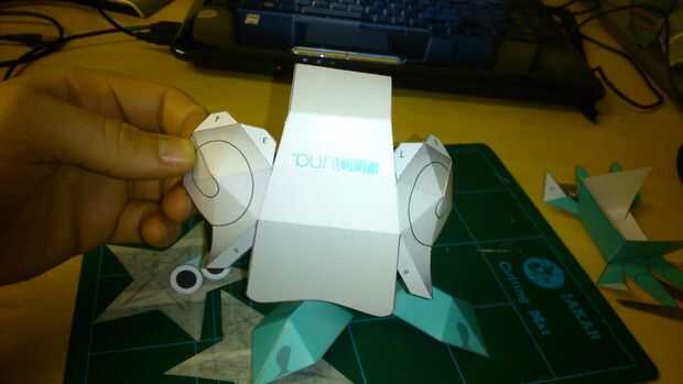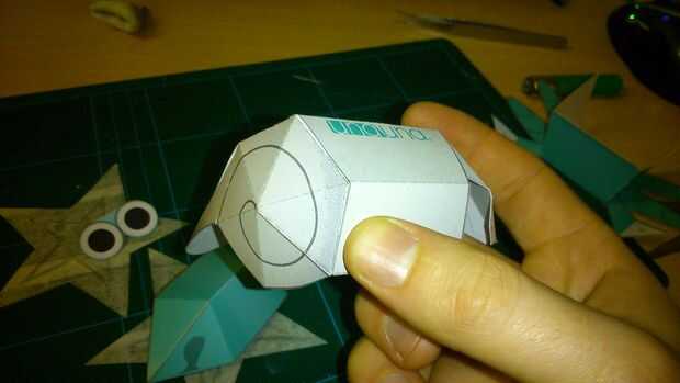 Nota la aleta repuesta sobresale en la base de la concha, va pegando el cuerpo a esto en el siguiente paso.
