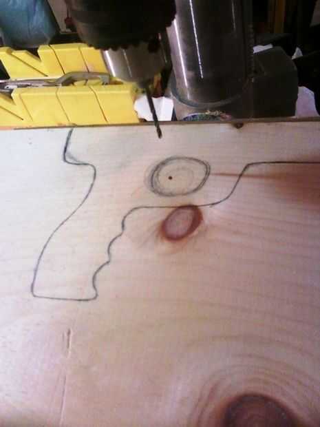 Primero perforé un orificio piloto con una broca de 3/32 bits, y el orificio del gatillo fue perforado con una broca de 1" de bits.