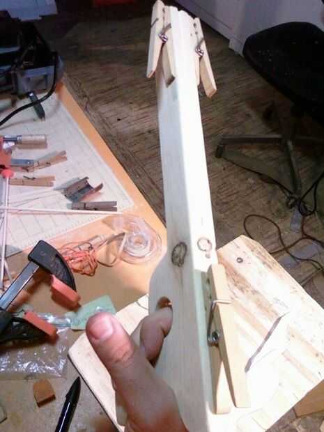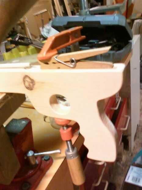 Yo pegado al cuerpo como se muestra con pegamento para madera, afianzado con abrazadera y deje seco.