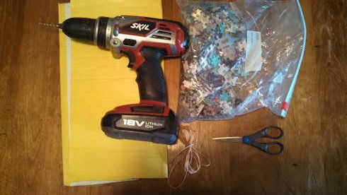 Un arma del taladro y broca es una necesidad. Antes de estos hice mis juguetes torciendo un cuchillo en cada pieza; no vale la pena!! No le puedo dar un tamaño que no sé qué tipo de cadena a utilizar pero te garantizo que va a ser bastante estándar.