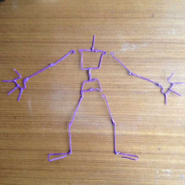 Tomar dos trozos de alambre, doblar un extremo de cada uno y juntos. Este puede ser ajustado como no ser una articulación.