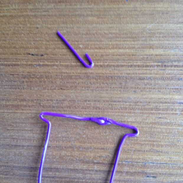 tomar uno de sus recortes y hacer un gancho en la parte inferior y colocar en la parte superior de la parte superior del cuerpo.