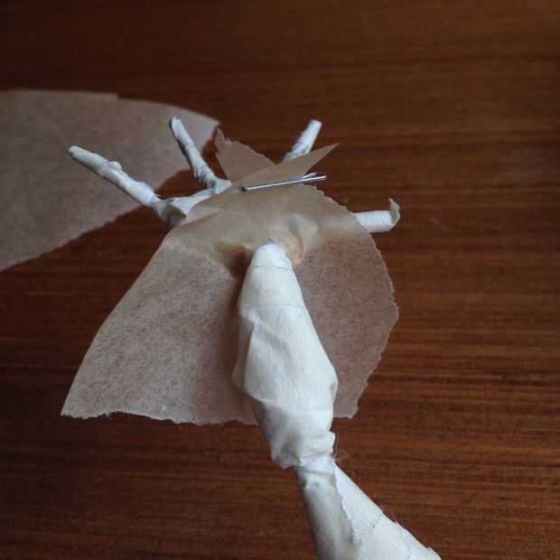 coloca el papel alrededor de las articulaciones y fije los extremos. una grapadora es un poco complicada pero es mejor que la cinta pero la cinta es más fácil de aplicar.