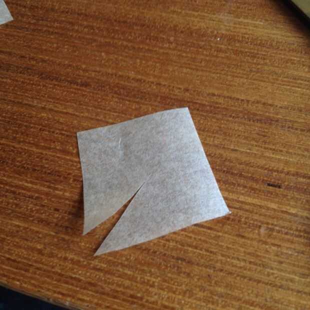 Tomar su papel/de la hornada pergamino a prueba de grasa y cortar en cuadrados pequeños (aproximadamente 1 x 1 pulgadas)
