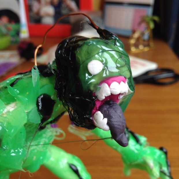 Es también el momento donde puede Agregar ojos/dientes/cables/tubos si quieres (hice algunas de la arcilla del polímero pero los granos y otros bits al azar funcionan igual de bien) o dejarlo como una masa :)
