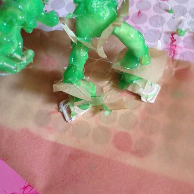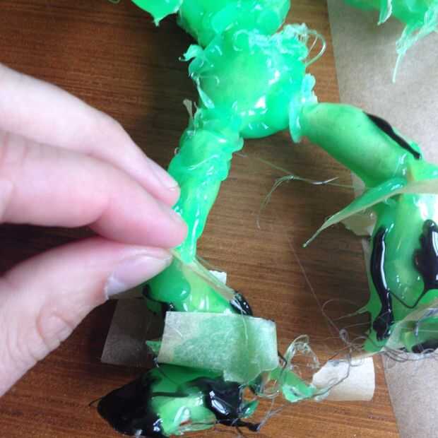Aquí estoy usando pegamento verde (y un poco de negro pero yo no estaba contento con él) pero se puede usar color de lo que desea, incluso normal del pegamento.