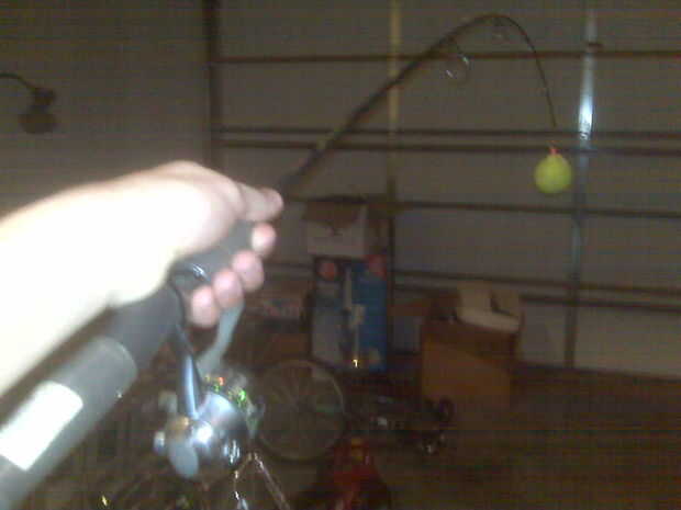 1. una caña de pescar resistente 2. una pelota de tenis 3. un corcho (preferabally el corcho estándar bola rojo-blanco) 4. un cuchillo (para cortar abierto una abertura de tamaño pequeño en la pelota de tenis) 5. y si es necesario unos plomos.