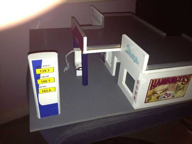 Señalización fue impreso en papel fotográfico y luego pegados a los lados de la estación PVA. A terminar esto con alguna línea de la marca en la base y en el aparcamiento de la azotea.