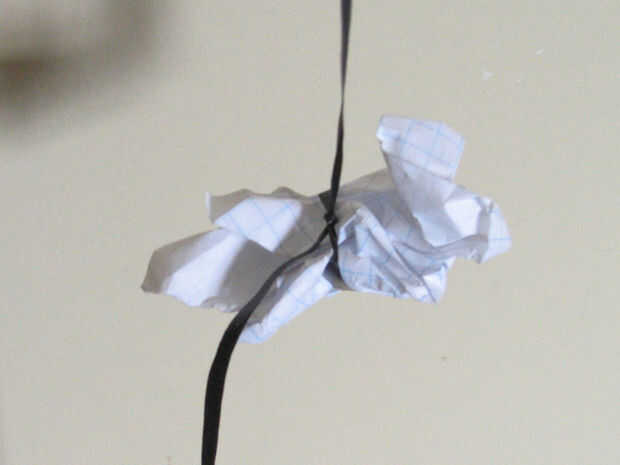 3. un objeto ligero pero voluminoso que pueden atar a la cinta. Utilizamos un trozo arrugado de papel.