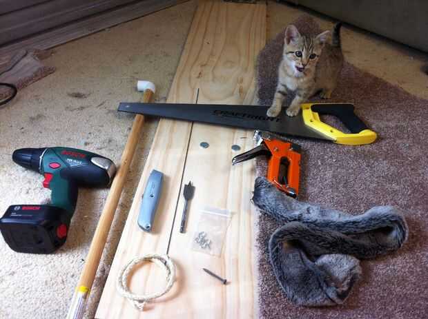 370mmx240mm madera ($6 uso algo sólido, usé pino de 15 mm, costumbre de los gatos juegan con la endeble madera contrachapada)