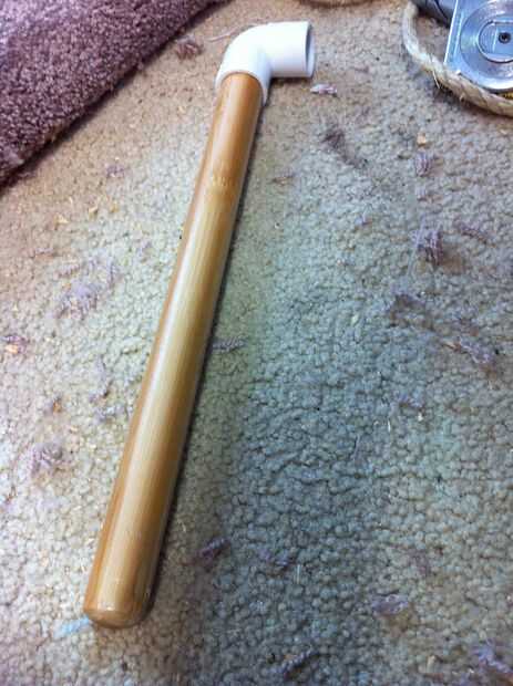 Tomar su escoba de 250mm, coloque el codo de pvc sobre el extremo cortado y golpear con un martillo (pegamento caliente si te gusta).