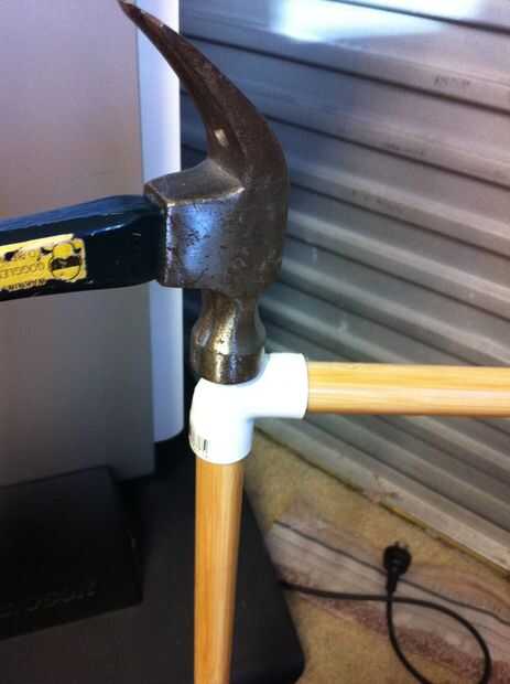 Coloque el extremo abierto del codo pvc la escoba vertical y ligeramente empuje en su lugar (cuando digo poco que digo sólo asegúrese de que usted puede bajarlo a mano porque eso es lo que harás en el paso 6)
