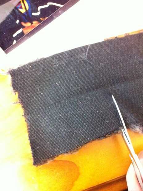 Tomar su chaqueta de piel falsa y cortar un cuadrado de aproximadamente 100mmx50mm.
