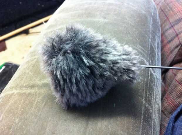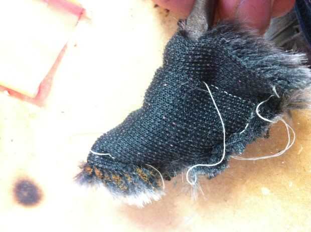 Ahora que el fluffyness está en el exterior, inserte el extremo del imán del hilo en el calcetín, podría ser un ajuste apretado, así que usar la fuerza.