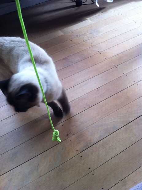 cómo mantener su gato feliz, estimuladoy ejercitado?Muchos gatos les encanta jugar con los objetos que cuelgan. Usted puede mantener un gato jugando durante un buen rato por que cuelga de un hilo fuera de su alcance, pero esto requiere de una mano hu