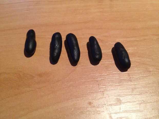 Rollo de un paquete de Sugru en cinco pequeñas tiras de unos 2cm / 0.5 en largo.