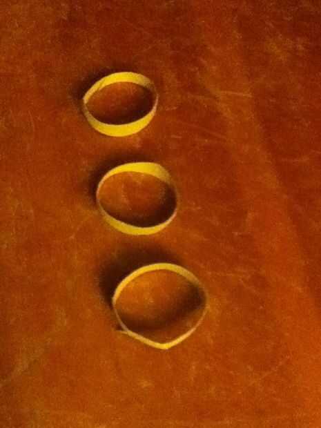 Corta tres círculos finos del tubo de papel higiénico.