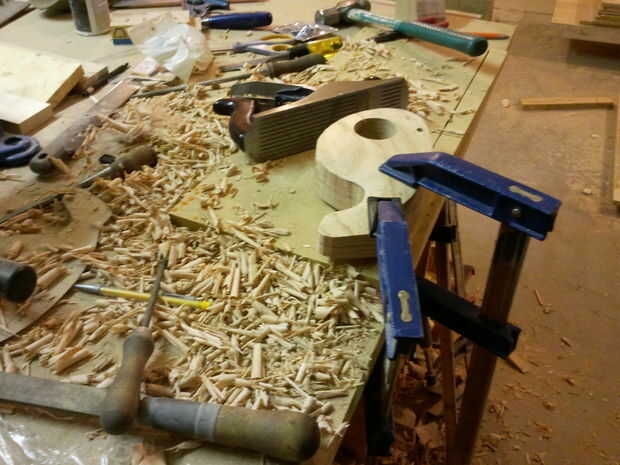 Usaba un avión de la mano y un mueble rascador para esto, pero podría utilizar una escofina o un papel de lija y un montón de grasa de codo.