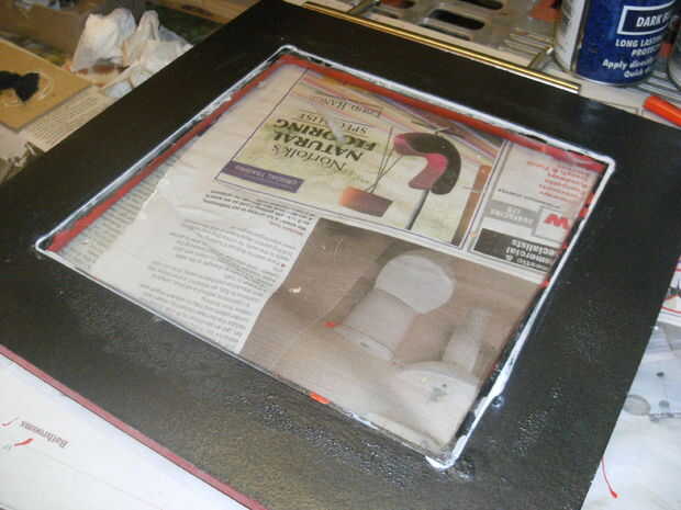 12mm MDF cortado a tamaño (265 mm x 320 mm) y luego uso router con ronda sobre poco todo el camino alrededor.