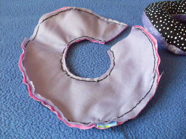 Una vez ha cortar y cortar el centro que deberá coser uno de los extremos cerrados nuevamente el primer anillo en su espiral en el extremo opuesto en el último anillo de la espiral. Estos serán los dos sin cintas.