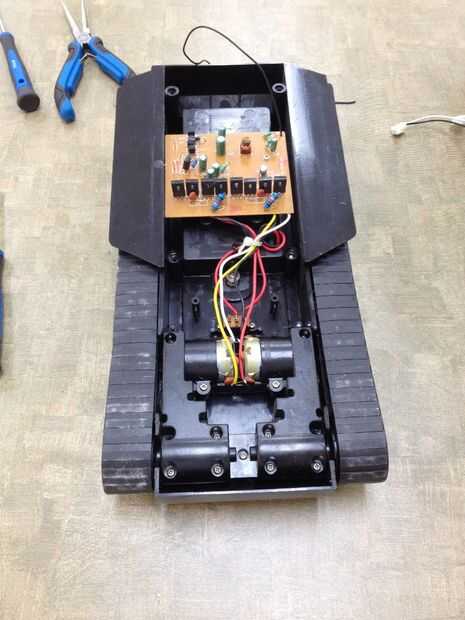 La diversión parte. Tomé el tanque aparte y fue impresionado al encontrar dos motores con los alambres a simple vista. Quité la placa PCB que estaba en el robot en primer lugar. Estoy seguro que si realmente hubiera jugado con esto, podría han utilizado el PCB que estaba en el robot, pero decidió deshacerse de él. He quitado la torreta y dejar a un lado y pensó que podría utilizar para otra cosa más adelante...