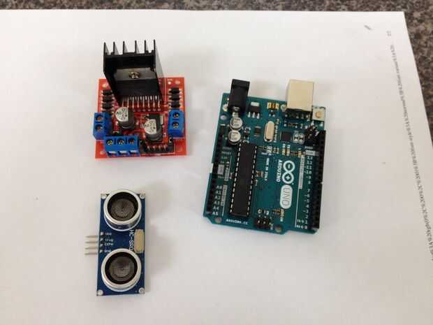 - La VCC en el sensor Ping está conectado a 5v terminal el puente en H. Por lo que es no conectado a 5v de Arduino.