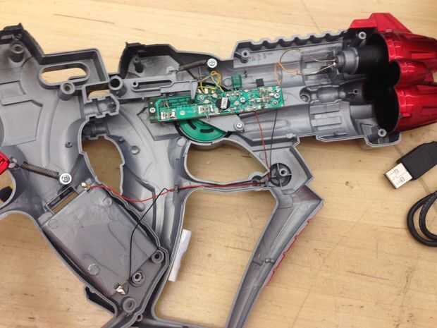 OK, por lo tanto, no cuchillos o cuchillas se utilizaron en este proyecto, pero vas a necesitar un tornillo conductor y algunos cortadores de alambre. Iniciar la apertura de su juguete, pero ser cuidado de no dañar los cables. Los cables que se encuentran dentro de su juguete son endebles y se rompen muy fácilmente.
