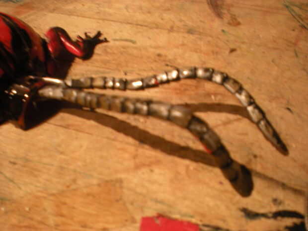Luego, tomar la rana del juguete y cortar las patas. El juguete era sorprendentemente fuerte, y terminé usando tijeras. Anexe las patas al cuerpo con pegamento caliente.