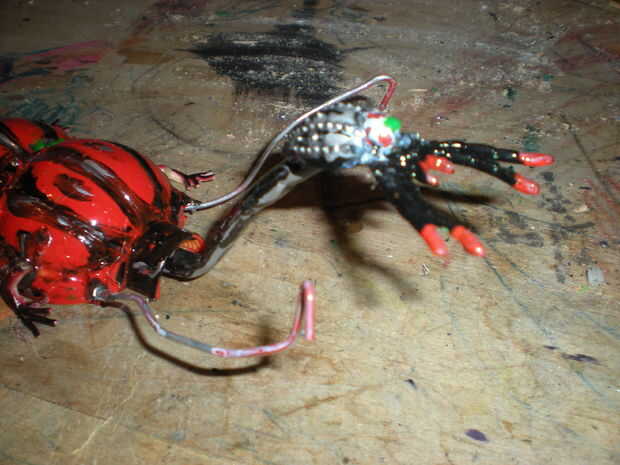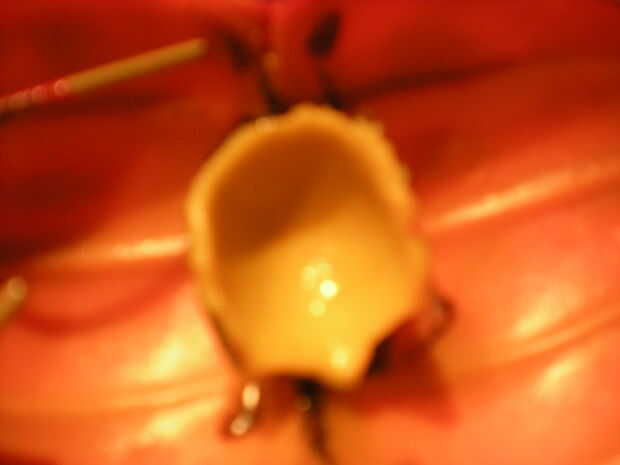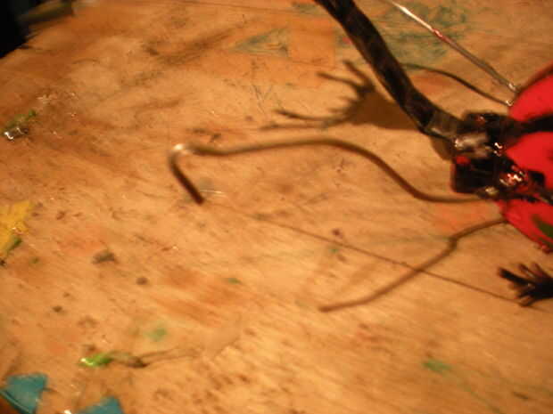 Opcional - para hacer el bombeo, tomar la antorcha del lápiz y derretir un pequeño agujero. Luego tomar un pequeño trozo de goma (yo tengo la mía de una marioneta de dedo de dinosaurios). Luego caliente encolarla al taladro que derretido.