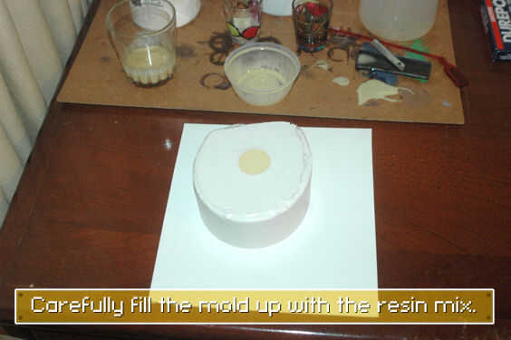 Vierta la resina en el molde, asegurándose de que toque toda la superficie interior. Como primero se vierte la resina, gire el molde en diferentes direcciones para que la resina se separa en su interior (como hace la gente al hacer chocolate Pascua huevos). Cubrir los pequeños agujeros y espacios donde aire llegara antes de otras partes. También asegúrese de que las burbujas salgan del líquido cuando llena.